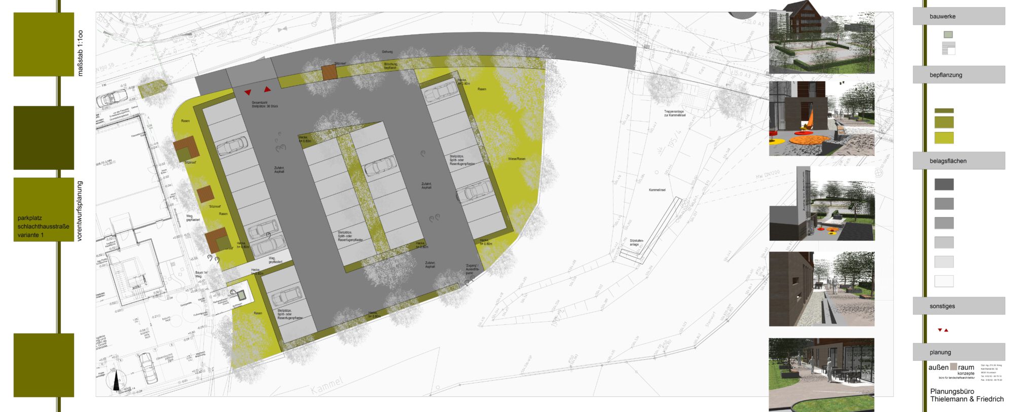 Erstellung eines Entwurfes für die Errichtung von Stellplätzen in der Schlachthausstraße in Krumbach, sowie Gestaltung des Raumes zwischen den Stellflächen und dem angrenzenden, öffentlichen Durchgangsweg.
